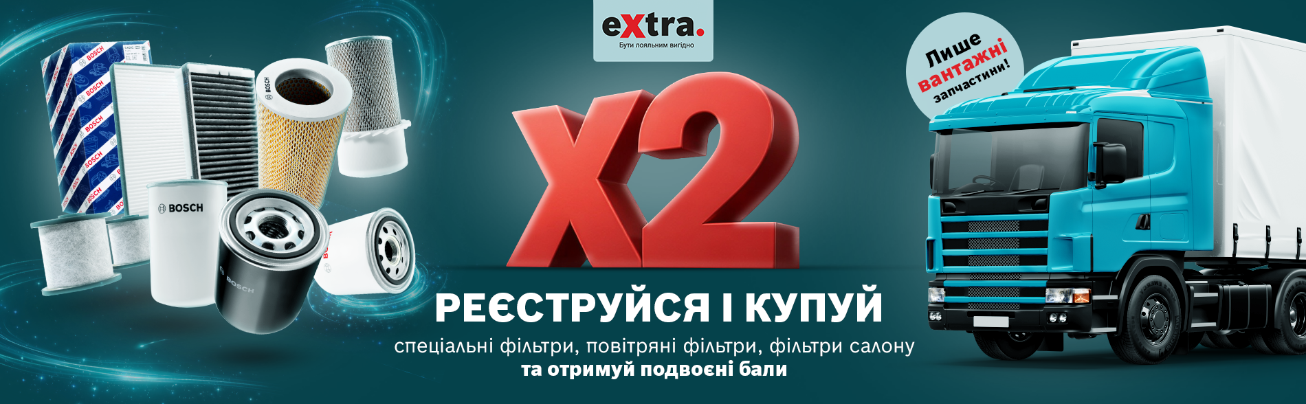 Програма лояльності eXtra дозволяє Вам, як власнику магазину автозапчастин або станції технічного обслуговування, заробляти бали за покупку автомобільних запчастин Bosch.